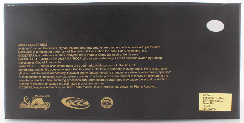 Premium NASCAR die-cast 1:24-scale die-cast car. Item is limited edition # / 504.
