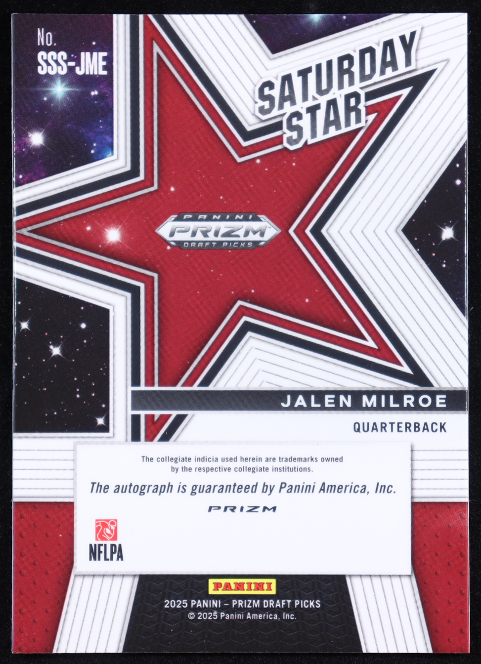 Jalen Milroe 2025 Panini Prizm Draft Picks Saturday Star Autographs #10 RC