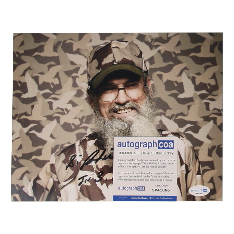 Photo measures 8" x 10" in size and has been hand-signed by Si Robertson.