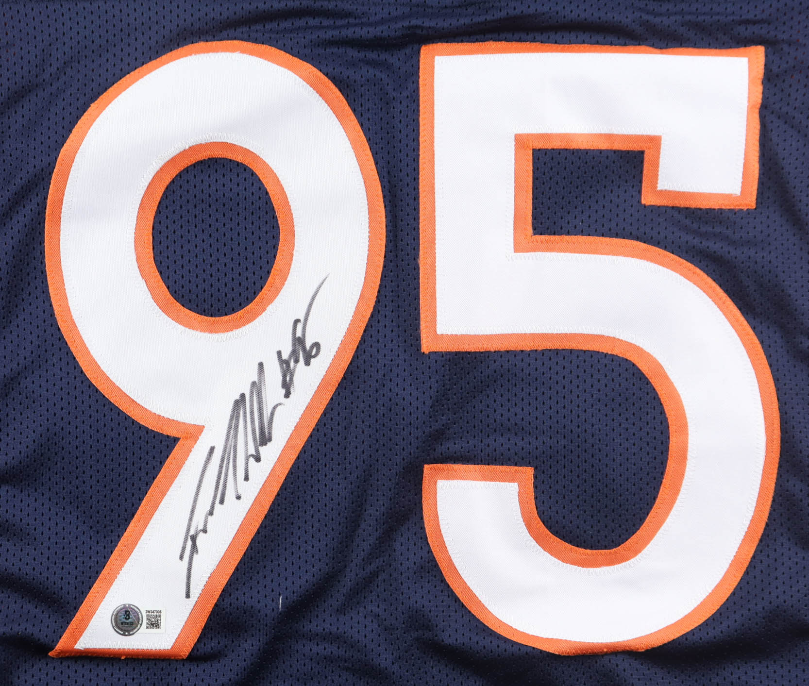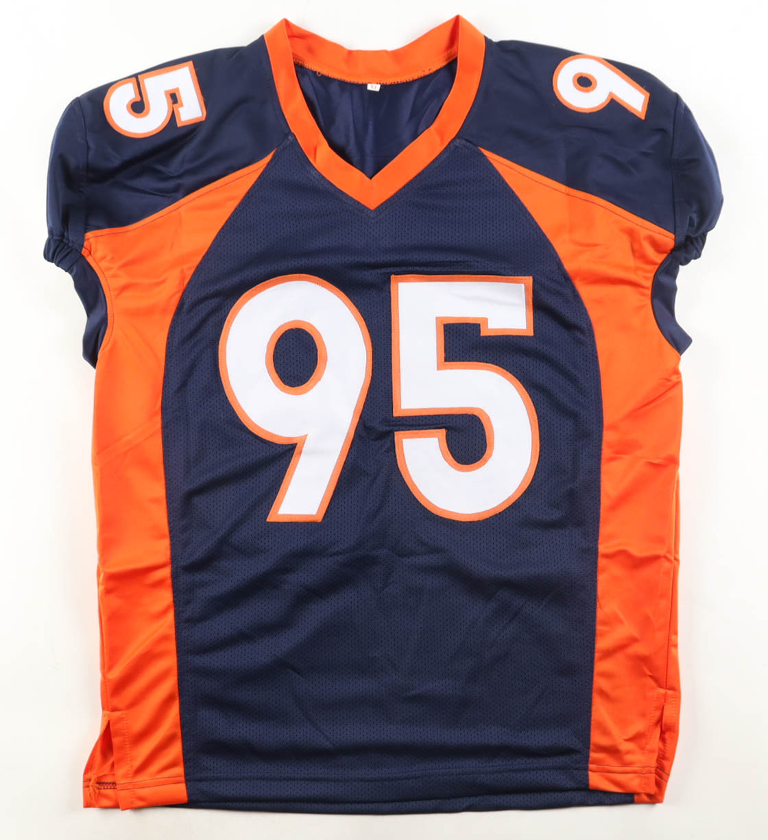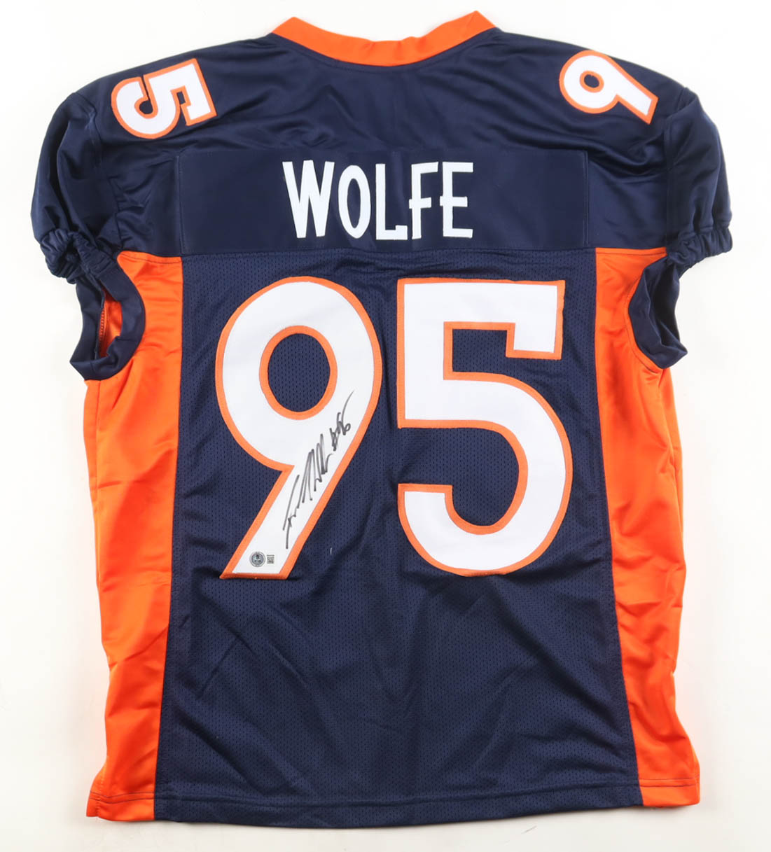 Custom jersey with everything sewn on, size XL. Hand-signed by Derek Wolfe.