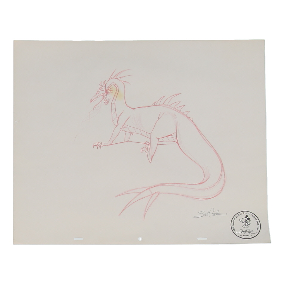This is an original character drawing by Disney Legacy Awarded artist and illustrator Scott T. Cook. It is done with graphite and colored pencil on acme punched animation paper from Disney Feature Animation, measuring 13.5" x 16.5". The drawing is hand-signed by the artist with a stamped seal of authenticity.
