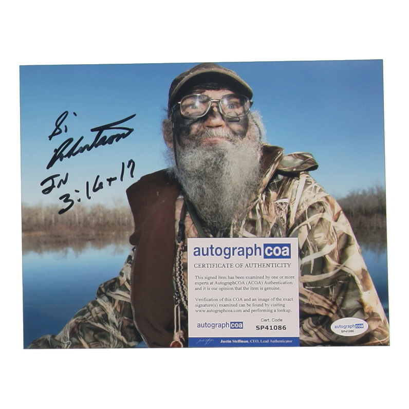 Photo measures 8" x 10" in size and has been hand-signed by Si Robertson.