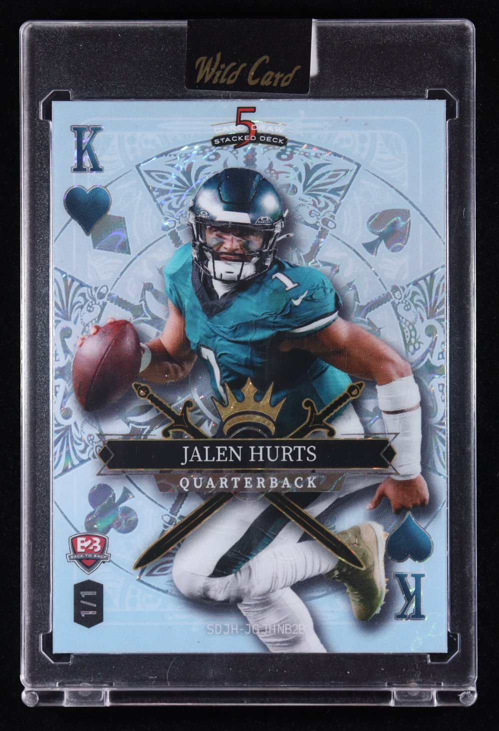 Jared Goff / Jalen Hurts 2024 Wild Card 5 Card Draw Back 2 Back King of Hearts Island Foil #JGJHNB2B #1/1