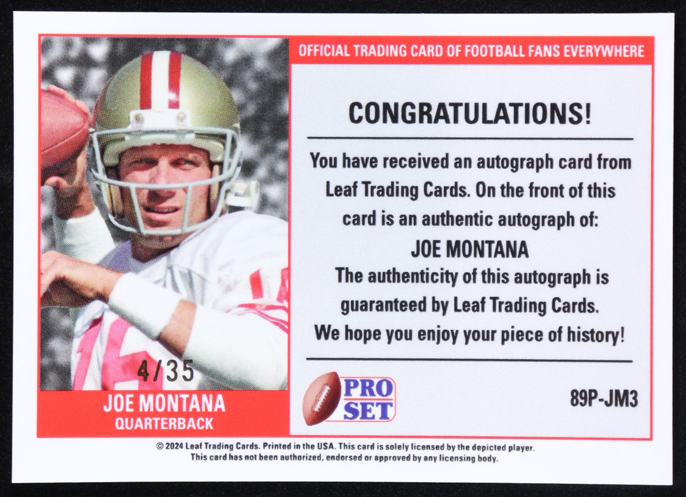 Joe Montana 2024 Leaf Joe Montana Legacy '89 Pro Set Prismatic Silver Autographs #89PJM3 #04/35