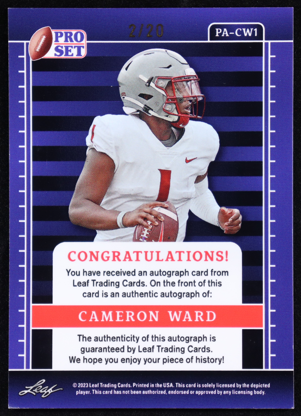 Cameron Ward 2023 Leaf Pro Set Metal Autographs Mojo Silver #PACW1 #02/20 RC