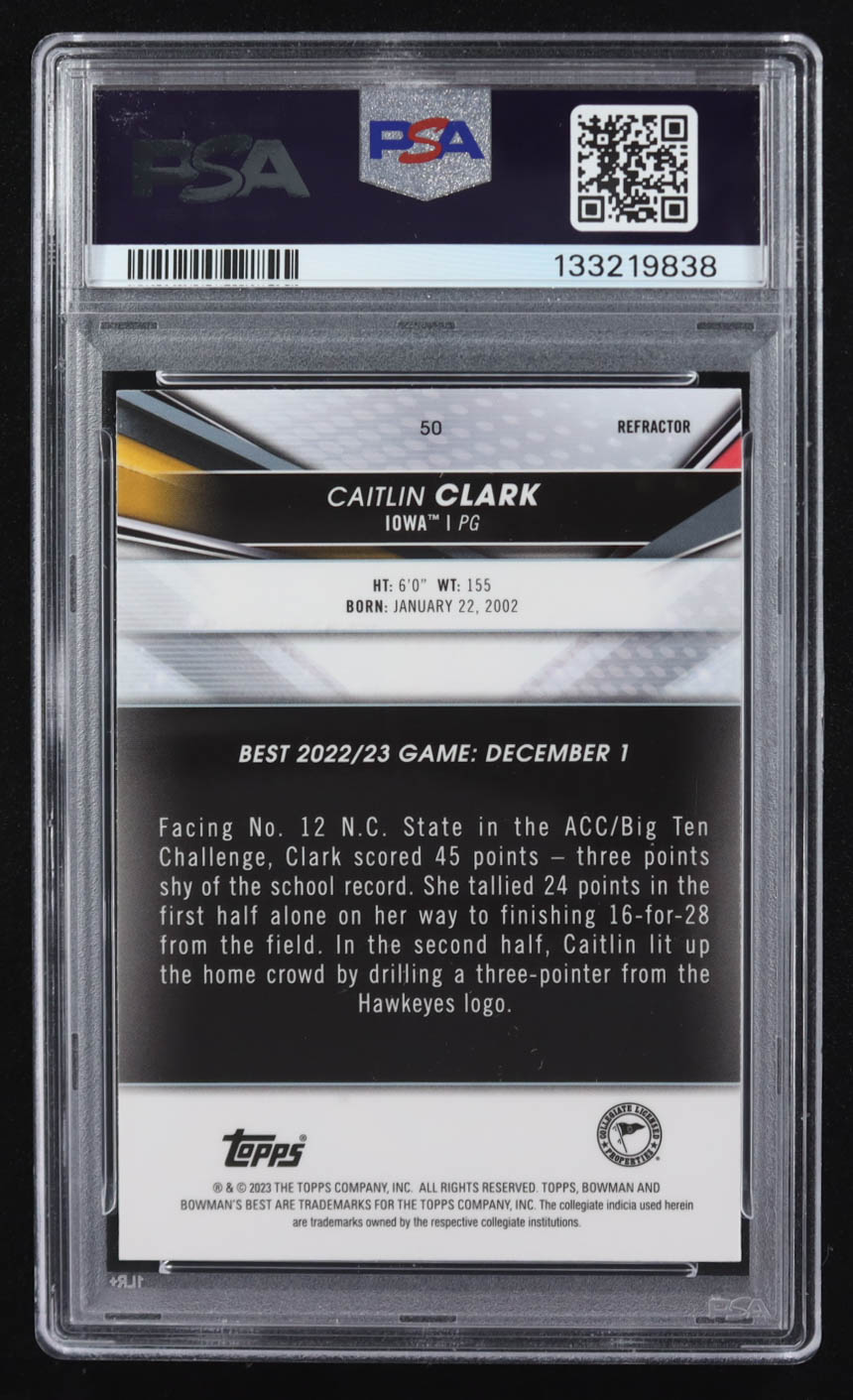 Caitlin Clark 2022 Bowman University Best Refractor #50 RC (PSA 9)