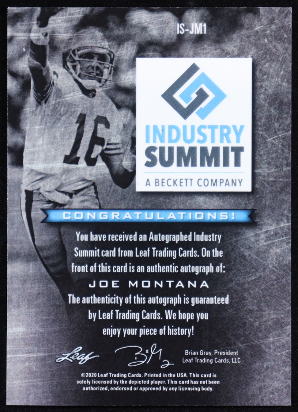 Joe Montana 2020 Leaf Industry Summit Joe Montana Autograph #ISJM1
