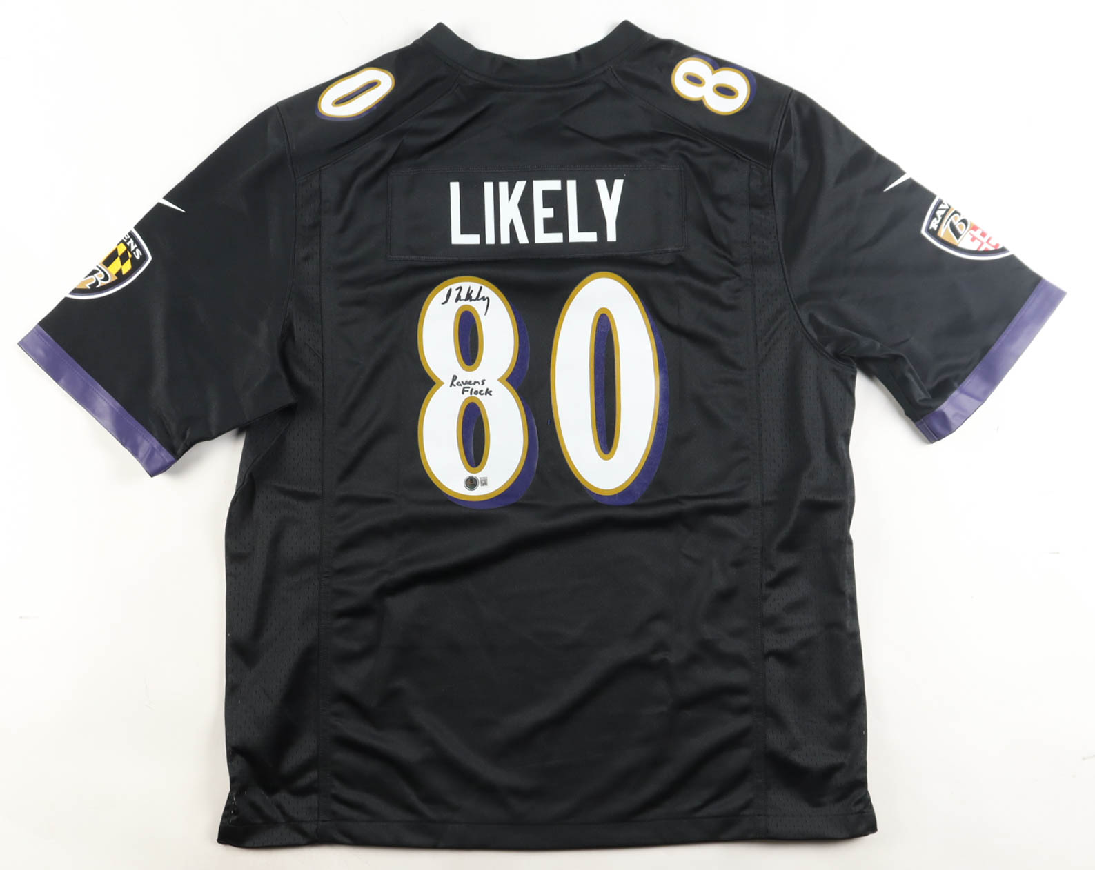 Isaiah Likely Signed Ravens Nike Authentic Jersey Inscribed "Ravens Flock" (Beckett)