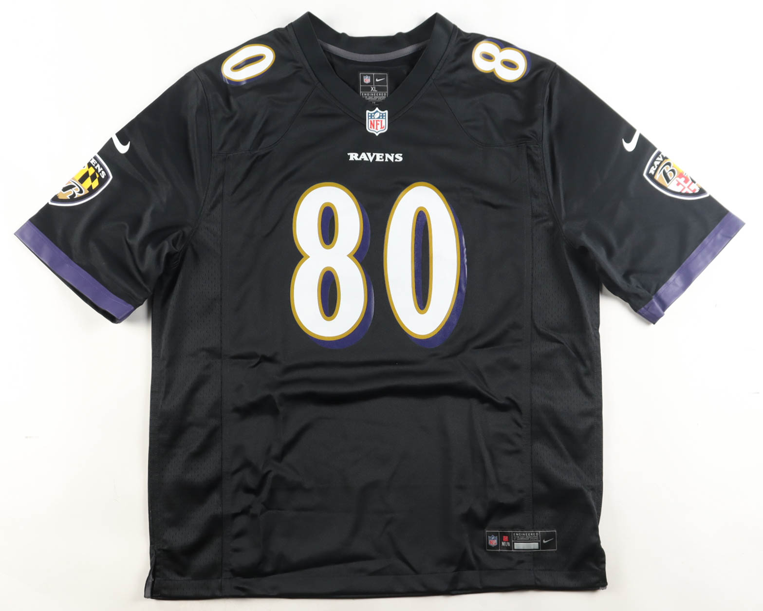 Nike jersey with everything pressed on, size XL. Hand-signed and inscribed by Isaiah Likely (Baltimore Ravens).