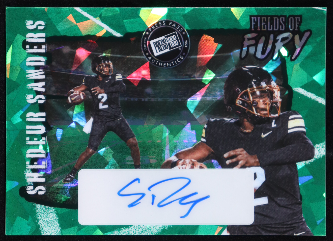 Shedeur Sanders 2024 Leaf Fields Of Fury Autographs Green Cracked Ice #FFASS1 #1/1
