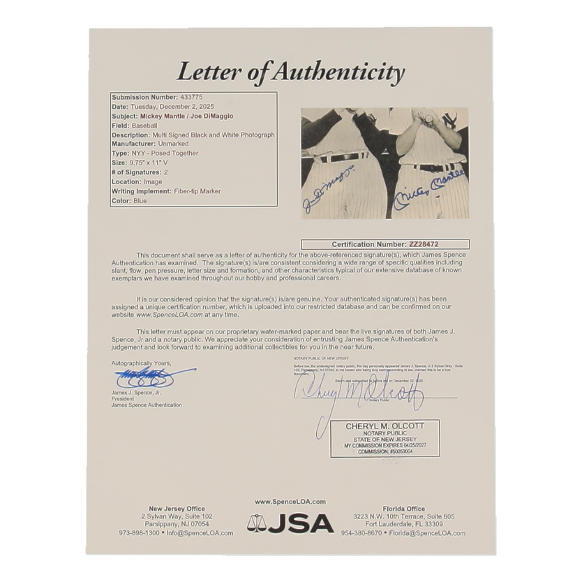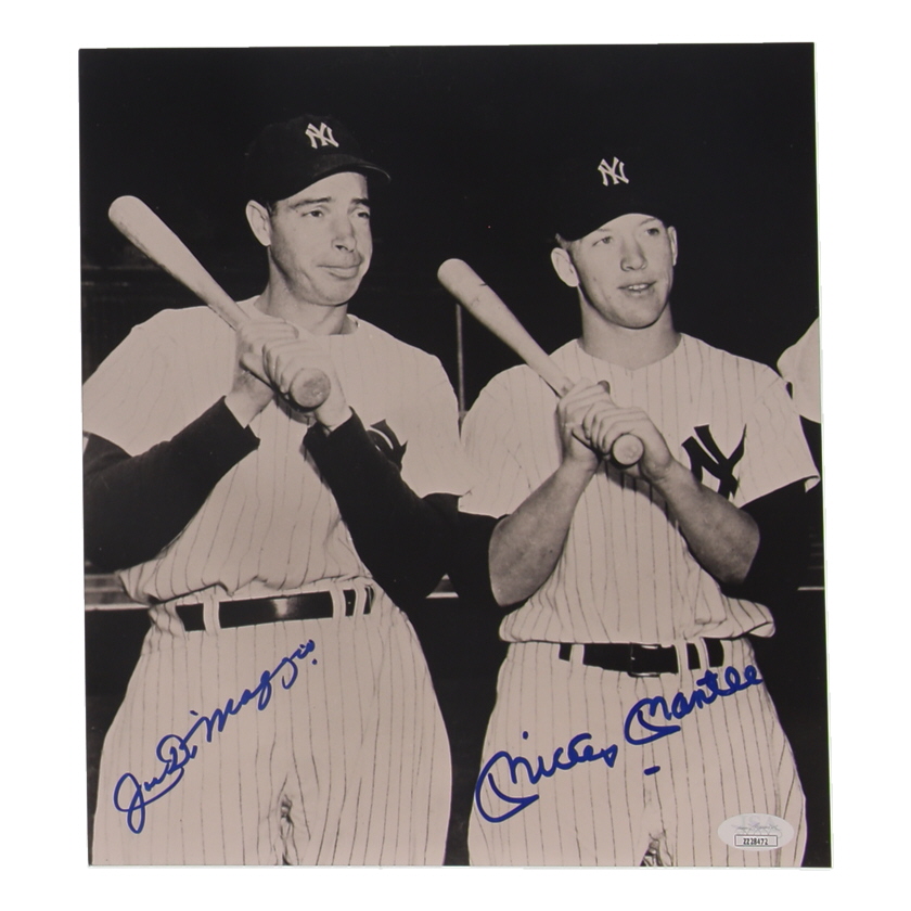 Photograph measures approximately 10" x 11" in size and has been hand-signed by (2) of the greatest New York Yankees of all time, Mickey Mantle and Joe DiMaggio!