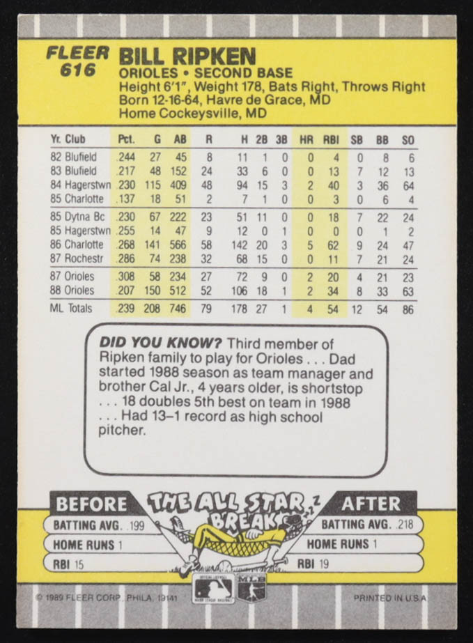 Billy Ripken 1989 Fleer #616 / F@#! FACE Error