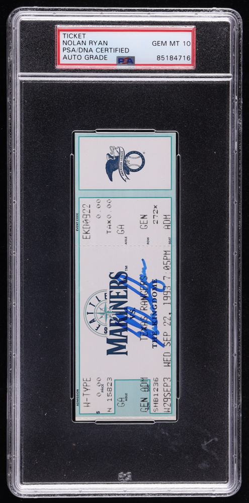 1993 Original Game ticket has been hand-signed by Nolan Ryan (Texas Rangers, HOF) and graded (PSA Auto Gem MT 10). Please see photos for details regarding the item.