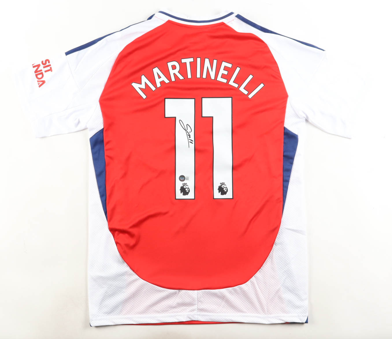 Adidas authentic jersey with everything pressed on, size L. Hand-signed by Gabriel Martinelli (Arsenal F.C.).