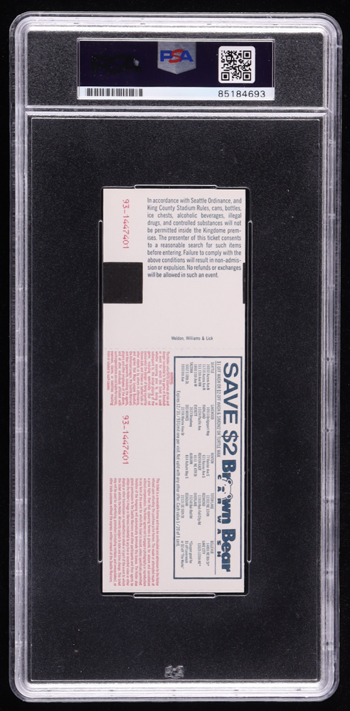 1993 Original Game ticket has been hand-signed by Nolan Ryan (Texas Rangers, HOF) and graded (PSA Auto Gem MT 10). Please see photos for details regarding the item.
