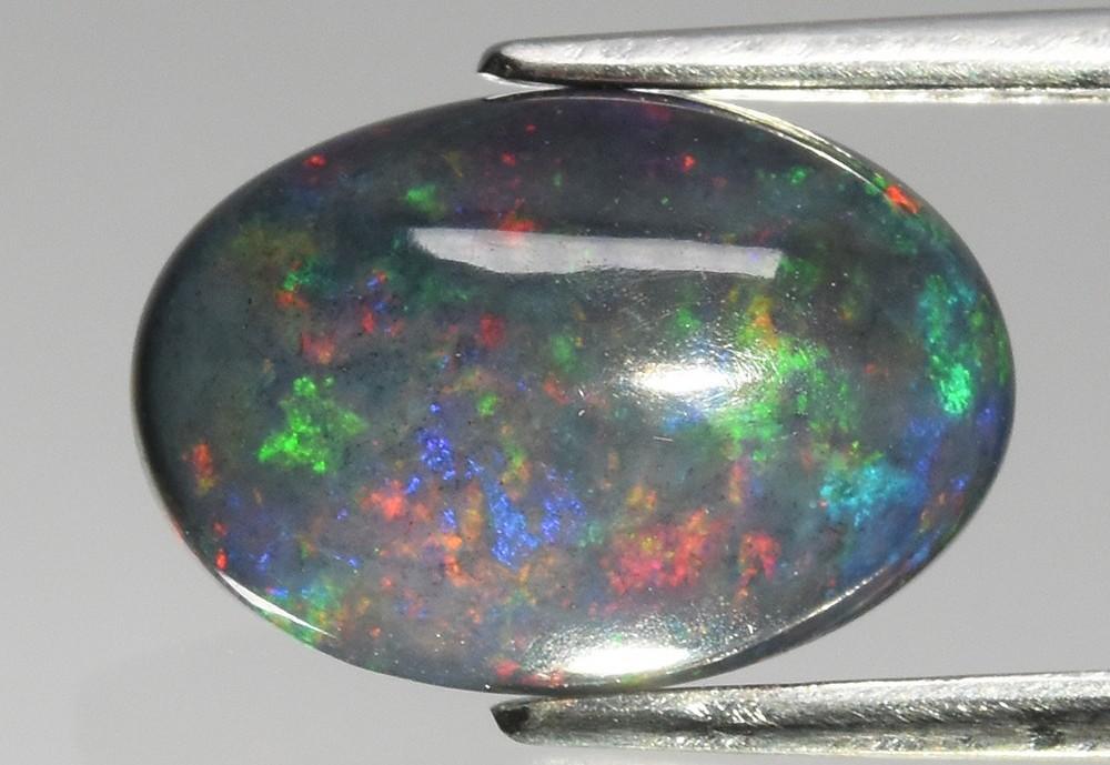 One (1) Loose Oval Cabochon Cut Natural Black Opal. The opal has a brilliant flash of many colors.
