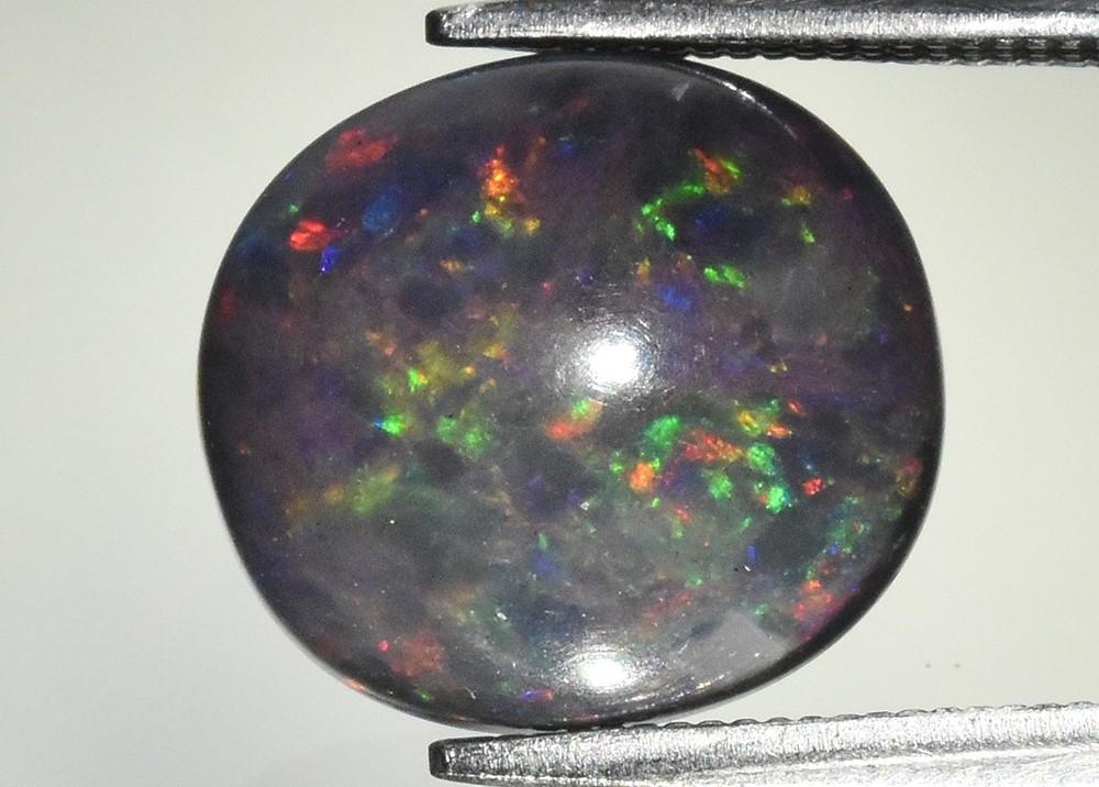 One (1) Loose Round Cabochon Cut Natural Black Opal. The opal has a brilliant flash of many colors.