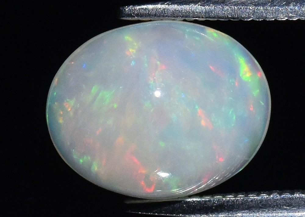 One (1) Loose Oval Cabochon Cut Natural White Opal. The opal has a brilliant flash of many colors.