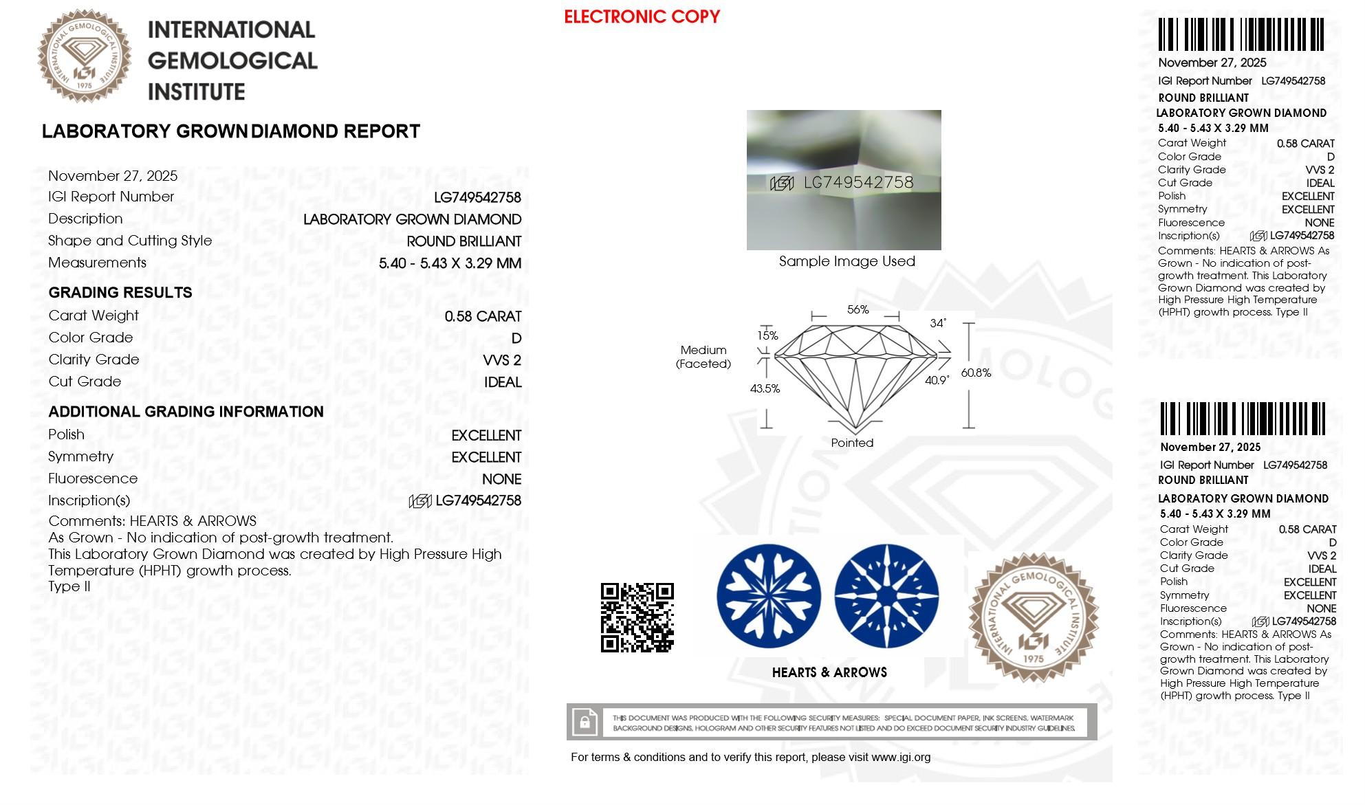 .58 Carats Lab Grown Diamond Loose D, VVS2 | (IGI Certificate)