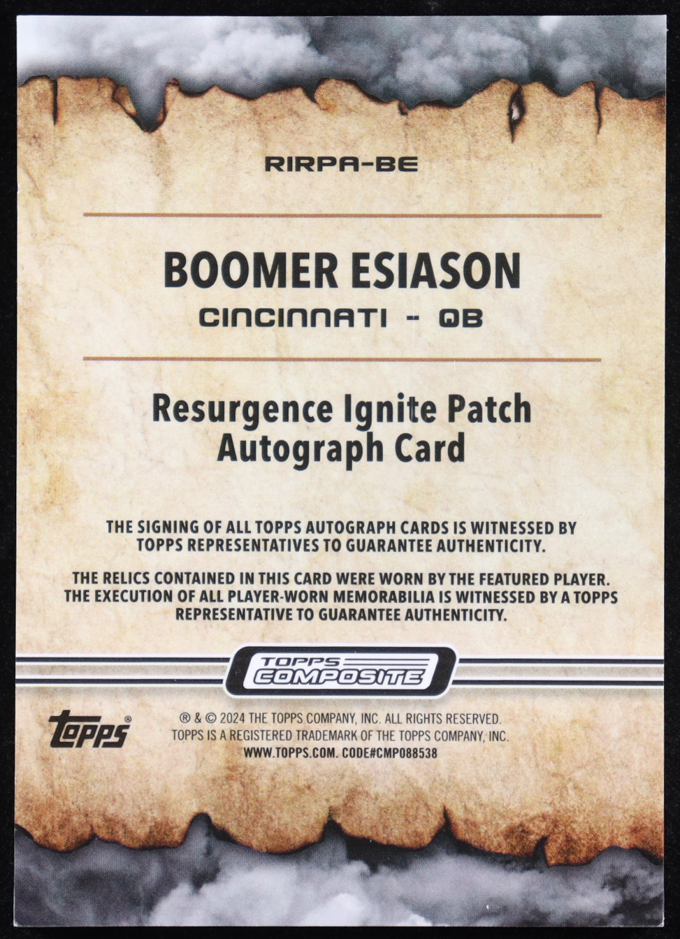 Boomer Esiason 2023 Topps Composite Resurgence Ignite Patch Autographs Purple Surge Player-Worn #RIRPABE #24/99