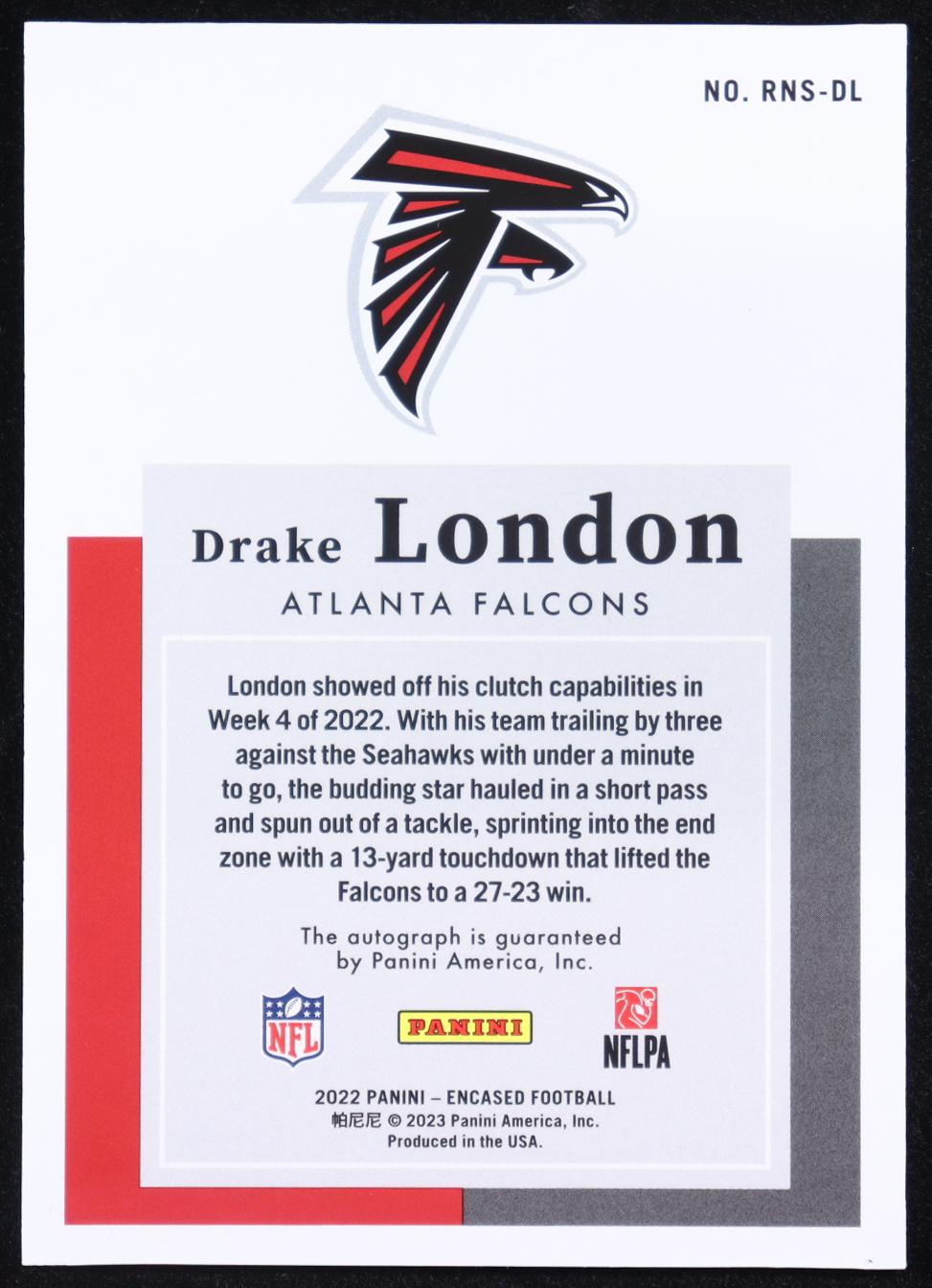 Drake London 2022 Panini Encased Rookie Notable Autographs Ruby #6 #04/15 RC