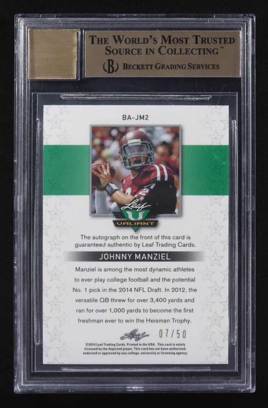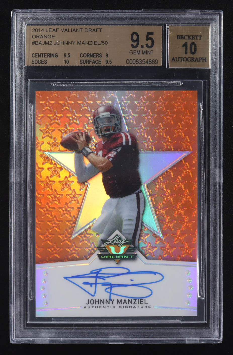 Johnny Manziel 2014 Leaf Valiant Autograph Orange #BA-JM2 RC #7/50 (BGS 9.5 | Auto 10)