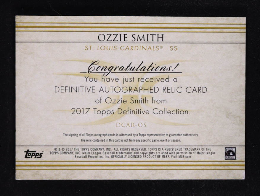 Ozzie Smith 2017 Topps Definitive Collection Definitive Autograph Relics #DCAROS #04/40