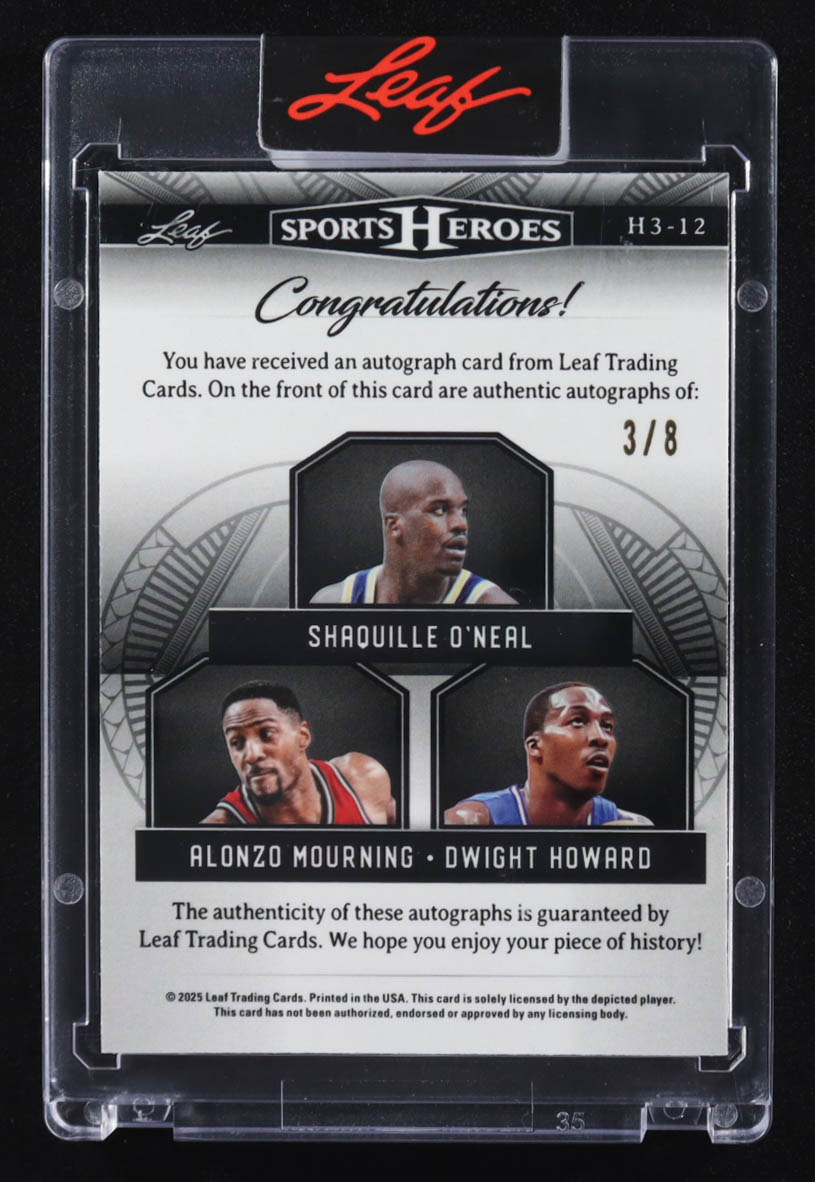 Shaquille O'Neal / Alonzo Mourning / Dwight Howard 2025 Leaf Sports Heroes Triple Autographs Purple Ice #H3-12 #3/8