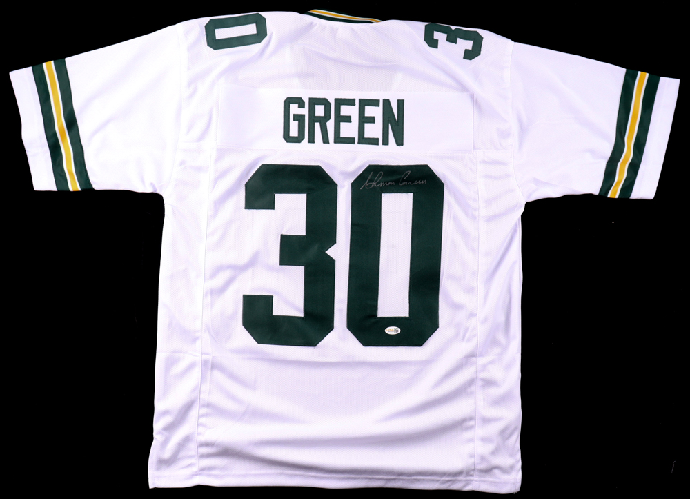 Custom jersey. Everything is sewn on, size XL. Hand-signed by Ahman Green.