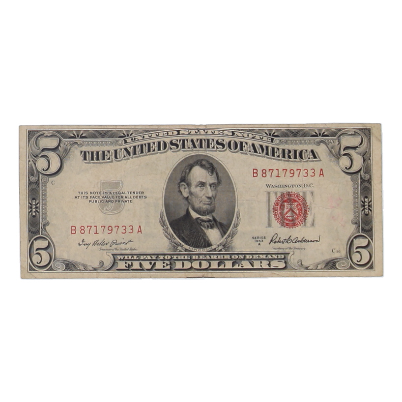 1953-A U.S. $5 Legal Tender Note, Red Seal - Fr.1533 (BA Block) Signed: Priest / Anderson
