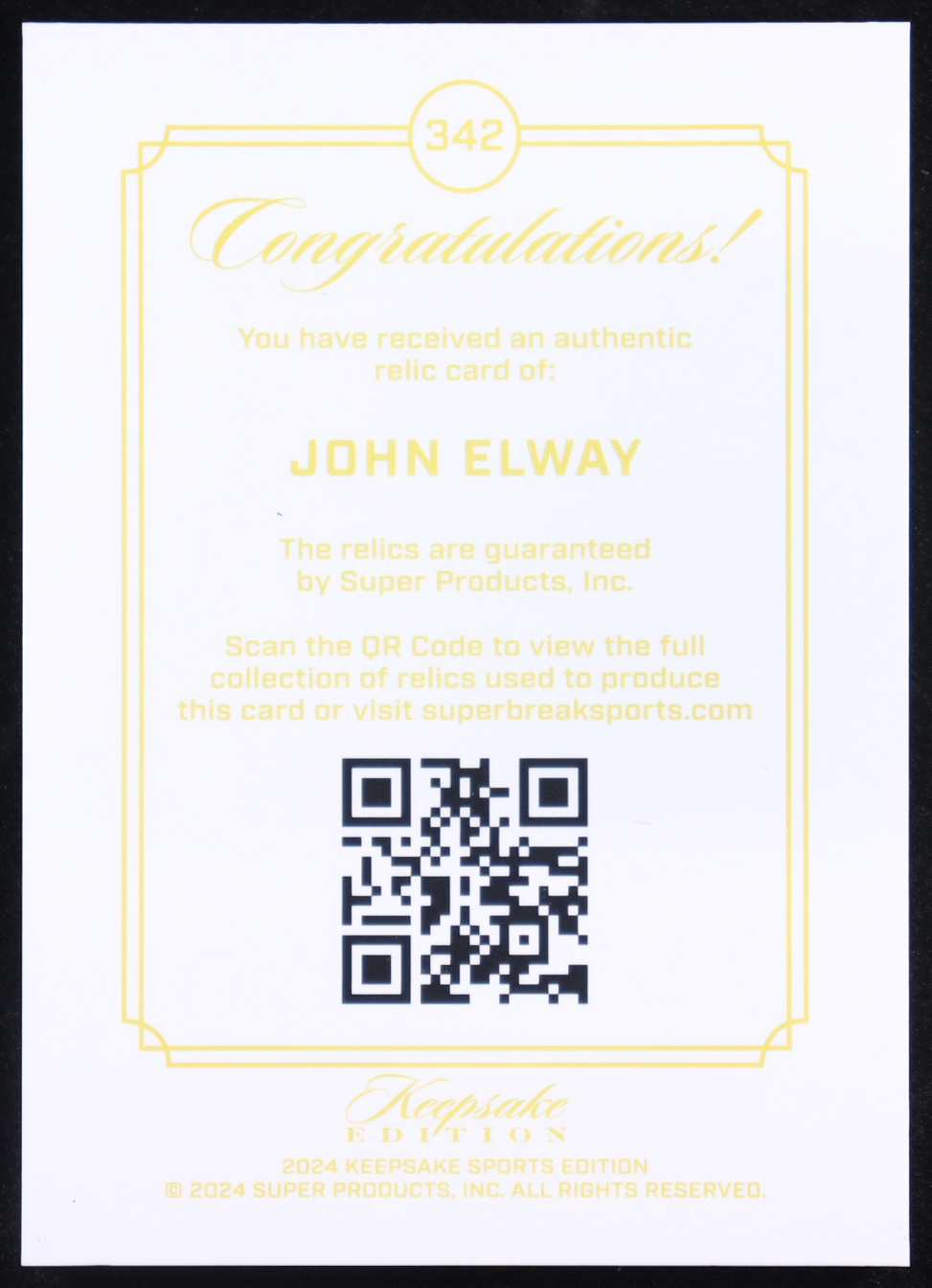 John Elway 2024 Keepsake Multi-Sport Edition Gem Relic #16/99