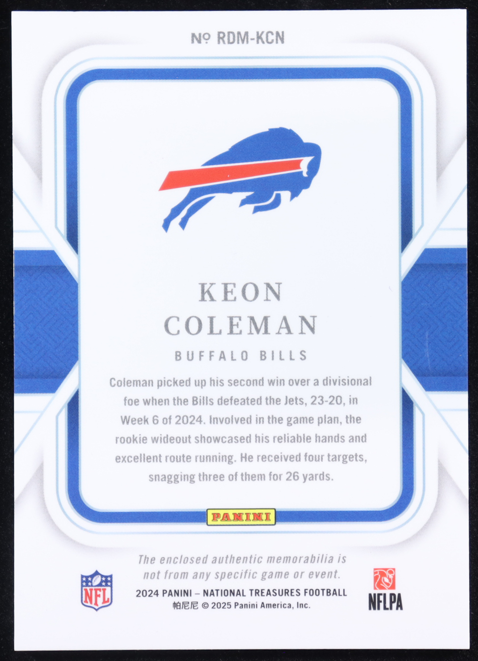 Keon Coleman 2024 Panini National Treasures Rookie Dual Materials Purple #26 #42/49 RC
