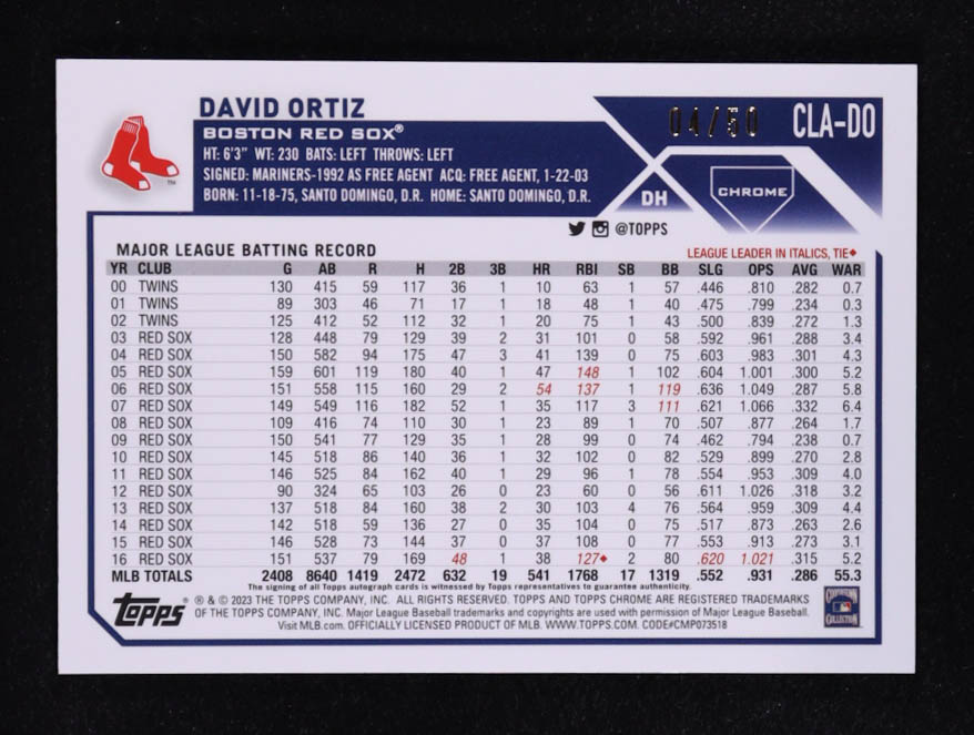 David Ortiz 2023 Topps Chrome Legends Autograph Refractors #CLADO #04/50