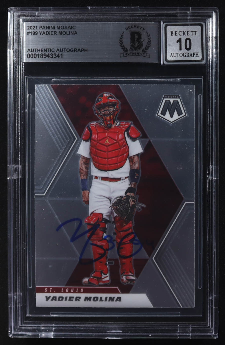 Yadier Molina Signed 2021 Panini Mosaic #189 (BGS)