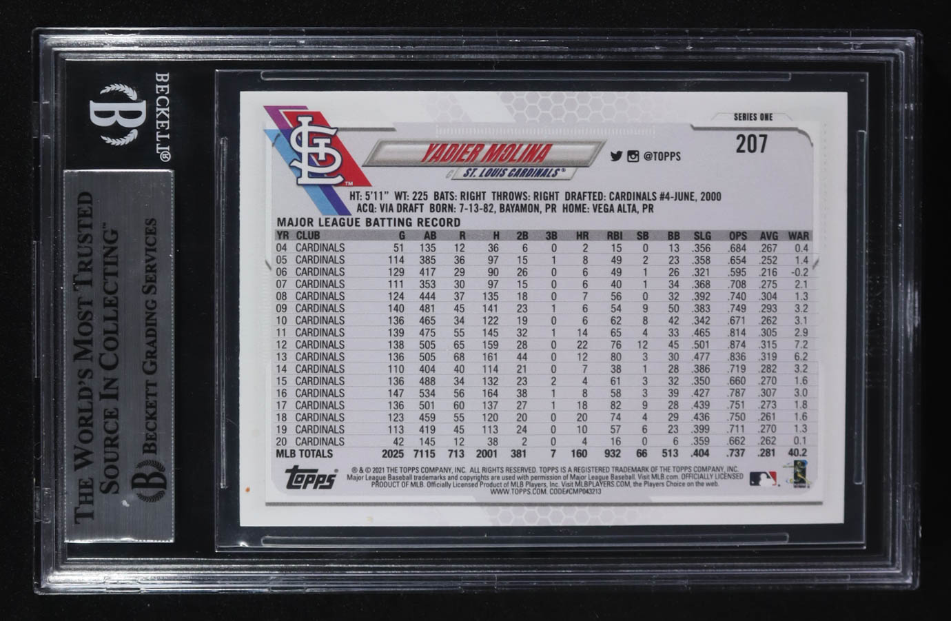 Yadier Molina Signed 2021 Topps #207 (BGS)