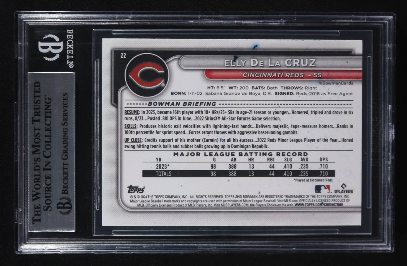 Elly De La Cruz Signed 2024 Bowman #22 RC (BGS)