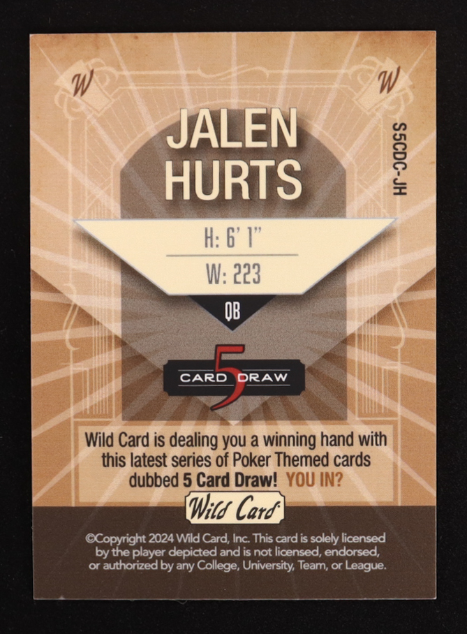 Jalen Hurts 2024 Wild Card 5 Card Draw Cream #S5CDC-JH #2/3