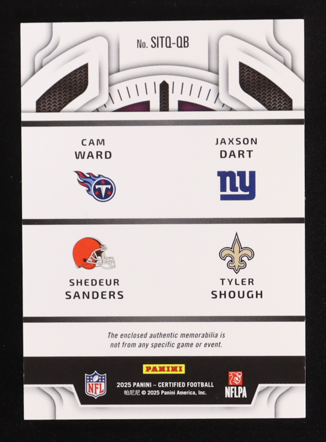 Cam Ward / Jaxson Dart / Shedeur Sanders / Tyler Shough 2025 Panini Certified Stitches In Time #SITQ-QB RC #15/40