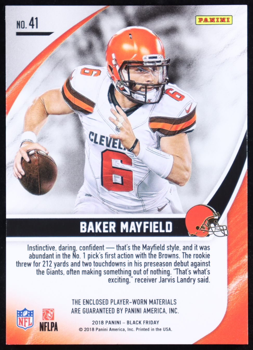 Baker Mayfield 2018 Panini Black Friday Escher Squared Player-Worn #41 #10/25 RC