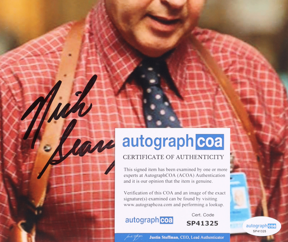 Photo measures 8" x 10" in size and has been hand-signed by Nick Searcy.