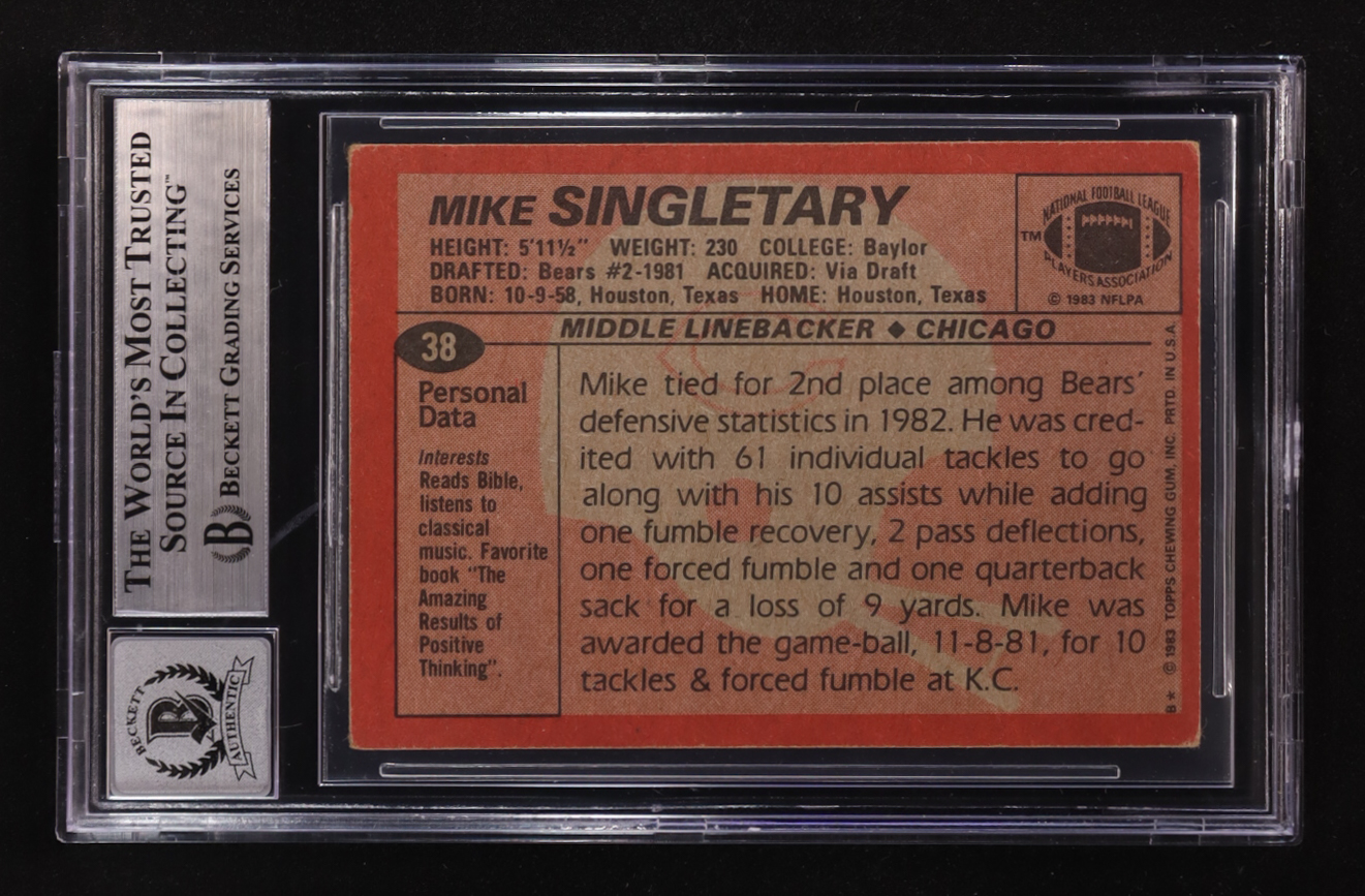 Mike Singletary Signed 1983 Topps Inscribed "HOF 98" #38 RC (BGS | Autograph Graded BGS 10)