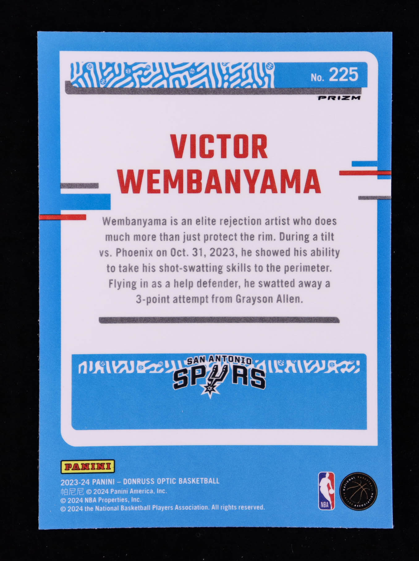 Victor Wembanyama 2023-24 Donruss Optic Hyper Pink #225 RR RC
