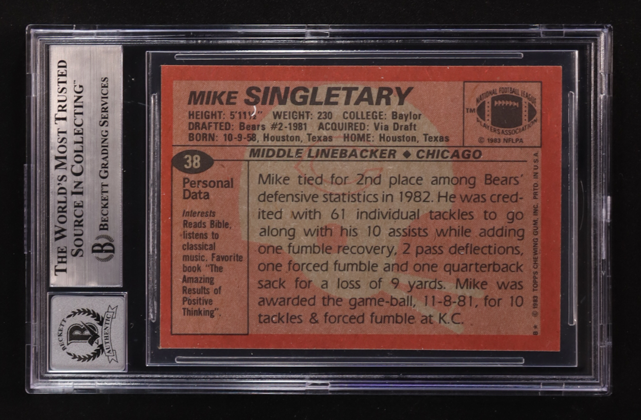 Mike Singletary Signed 1983 Topps Inscribed "HOF 98" #38 RC (BGS | Autograph Graded BGS 10)