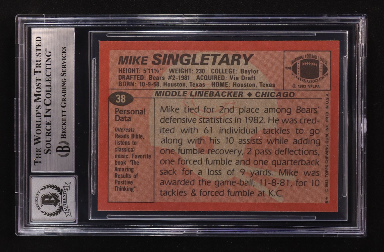 Mike Singletary Signed 1983 Topps Inscribed "HOF 98" #38 RC (BGS | Autograph Graded BGS 10)