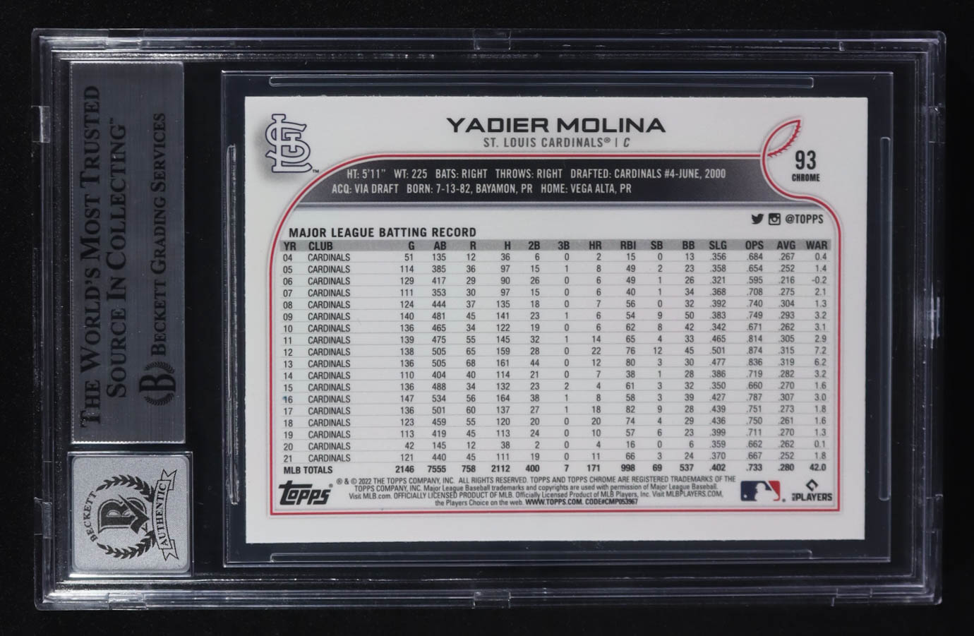 Yadier Molina Signed 2022 Topps Chrome #93 (BGS)