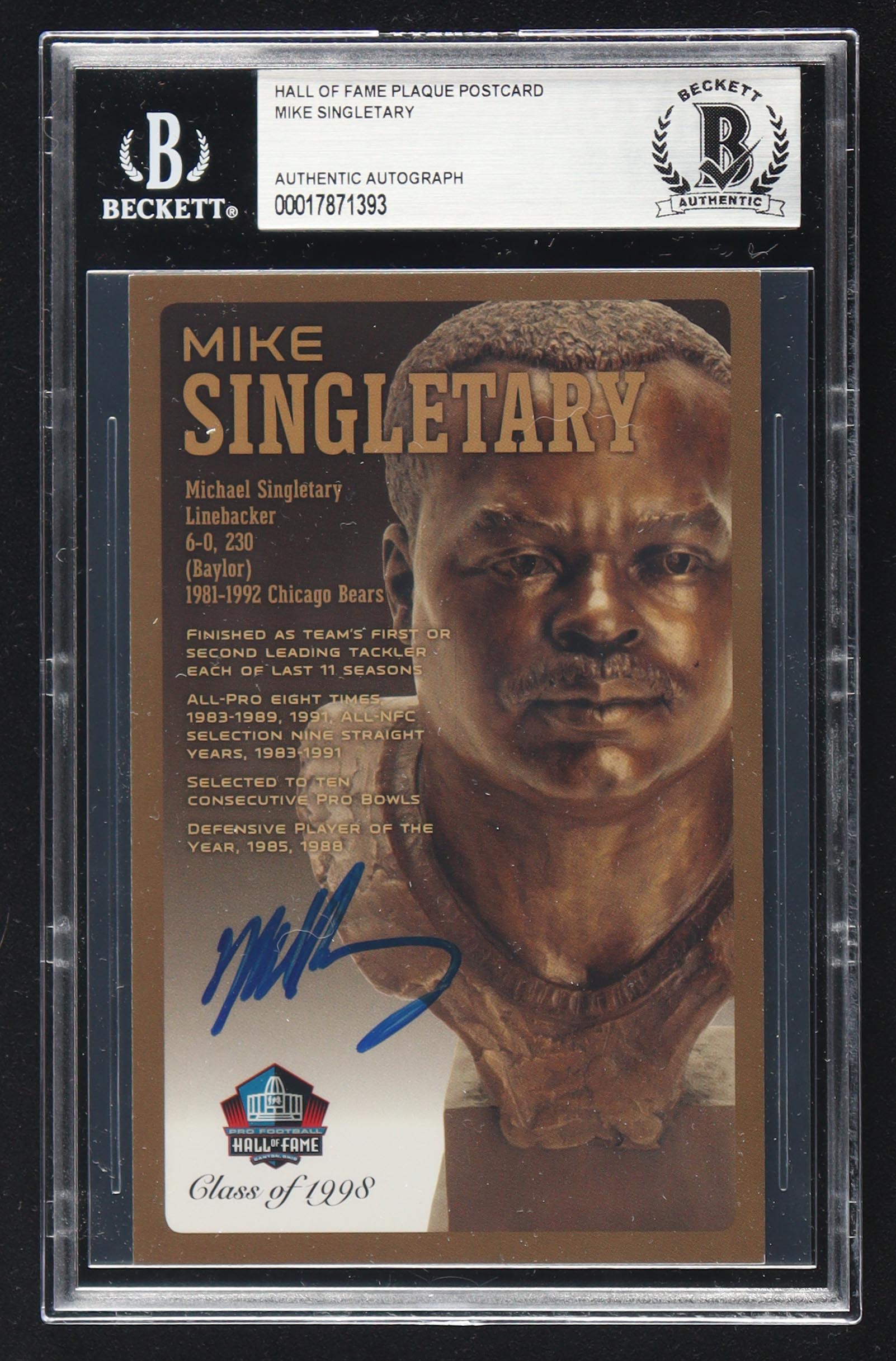 Mike Singletary Signed Hall of Fame Plaque Postcard (BAS)