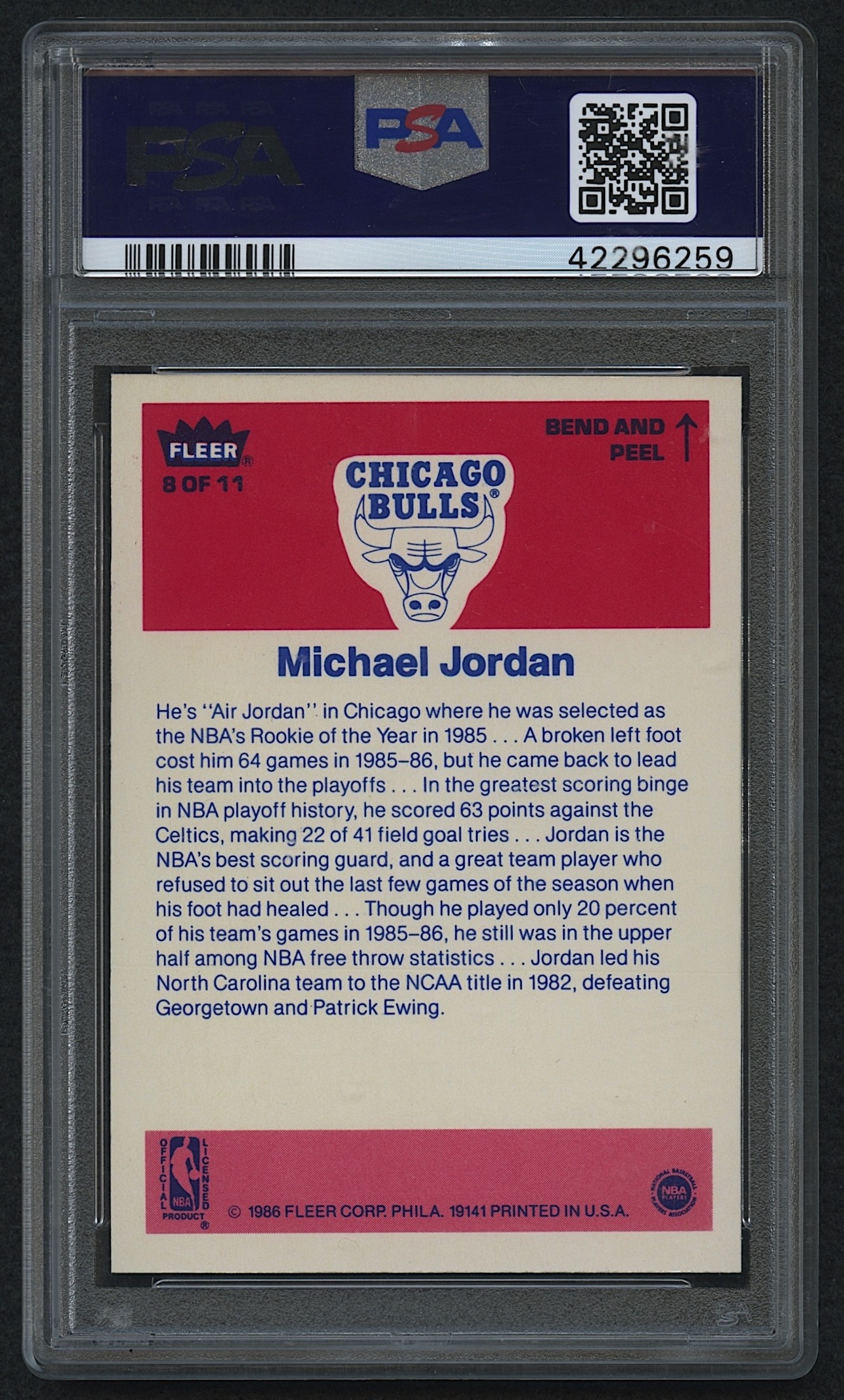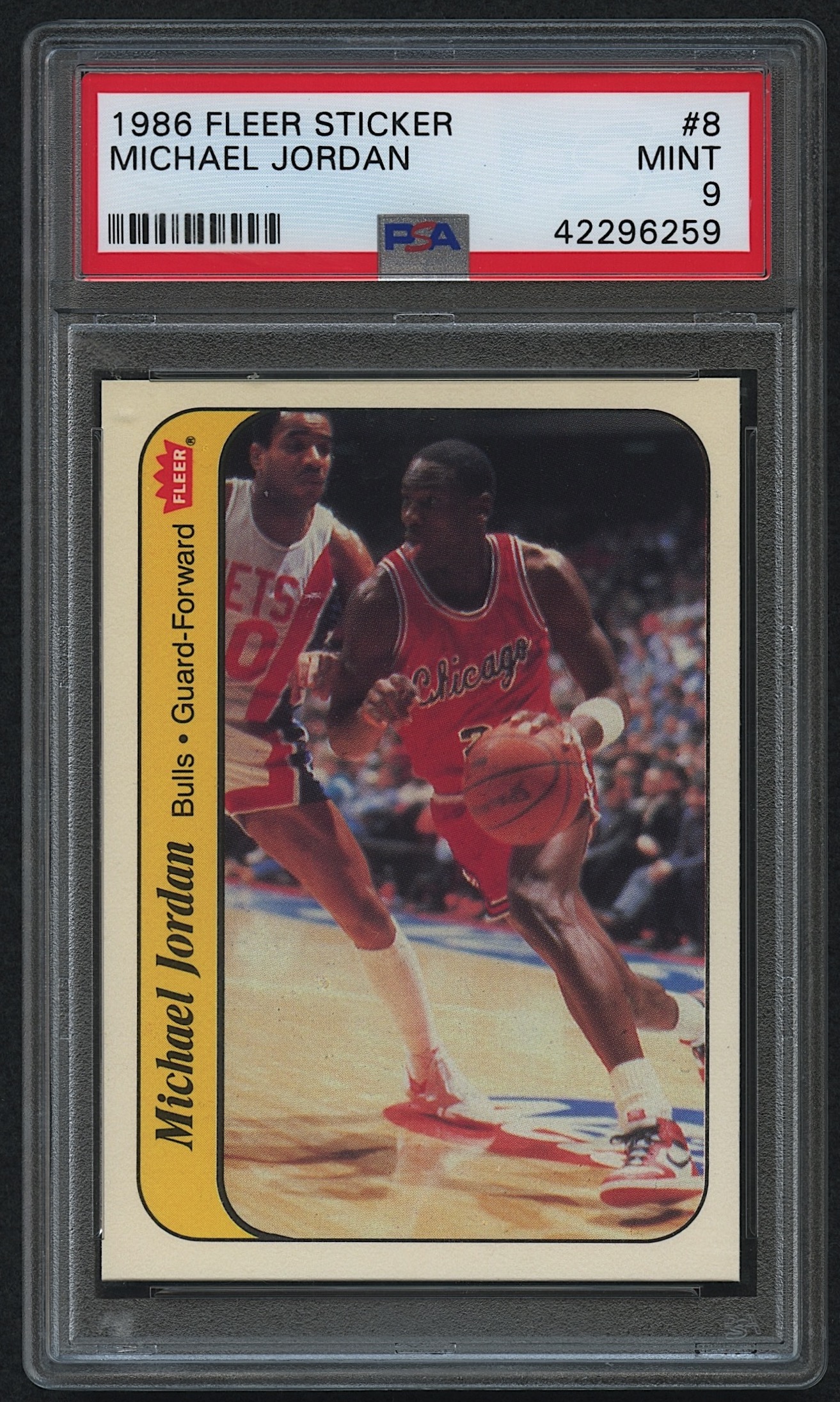 Michael Jordan 1986-87 Fleer Stickers #8 RC (PSA 9)