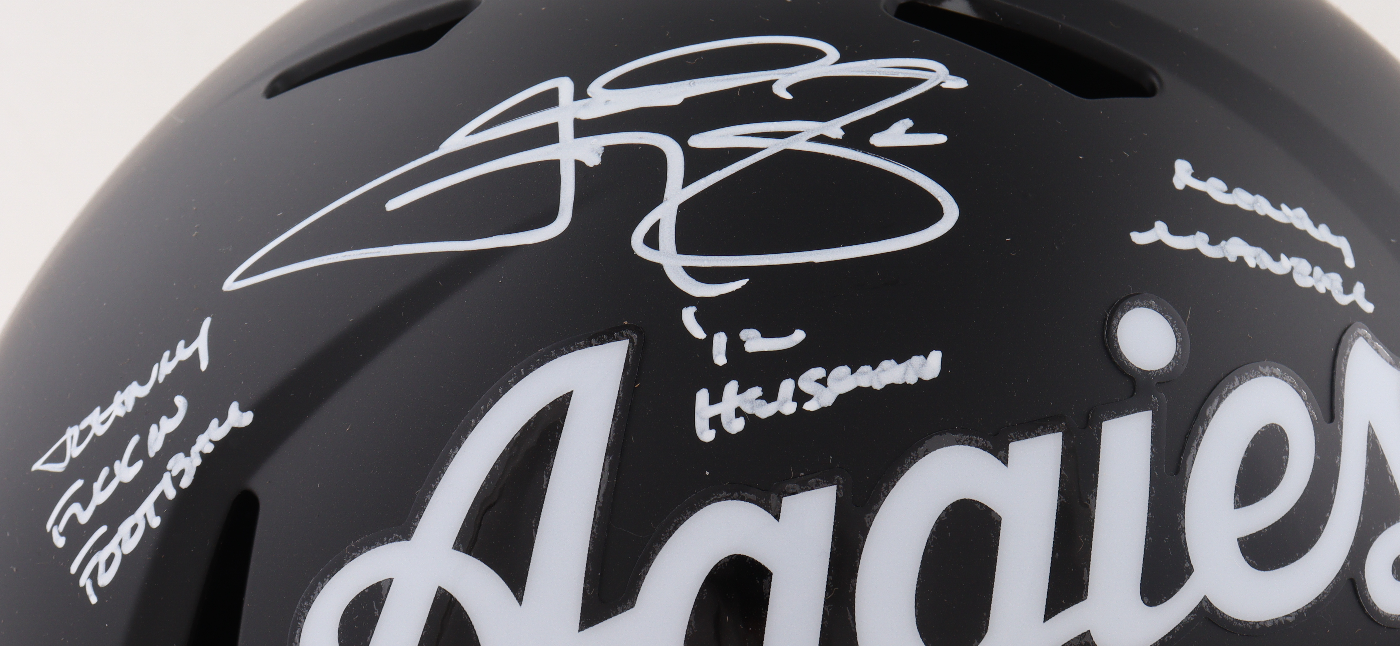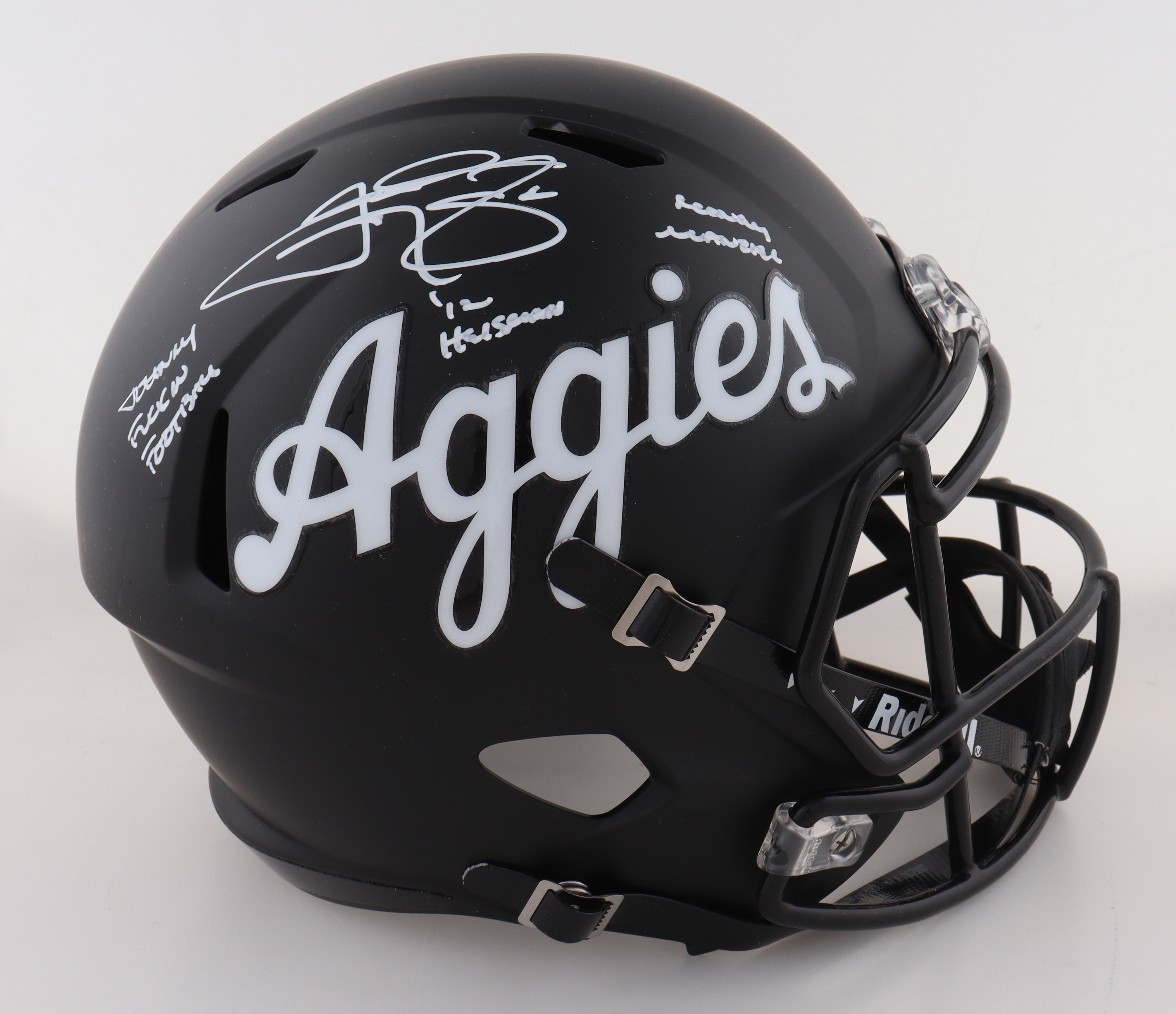 Riddell Texas A&M Aggies Full-Size Speed Replica Helmet. Hand-signed and inscribed by Johnny Manziel.