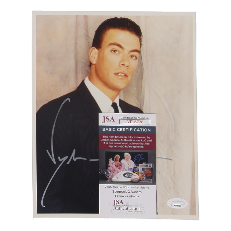 Photograph measures approximately 8" x 10" in size. Hand-signed by Jean-Claude Van Damme.