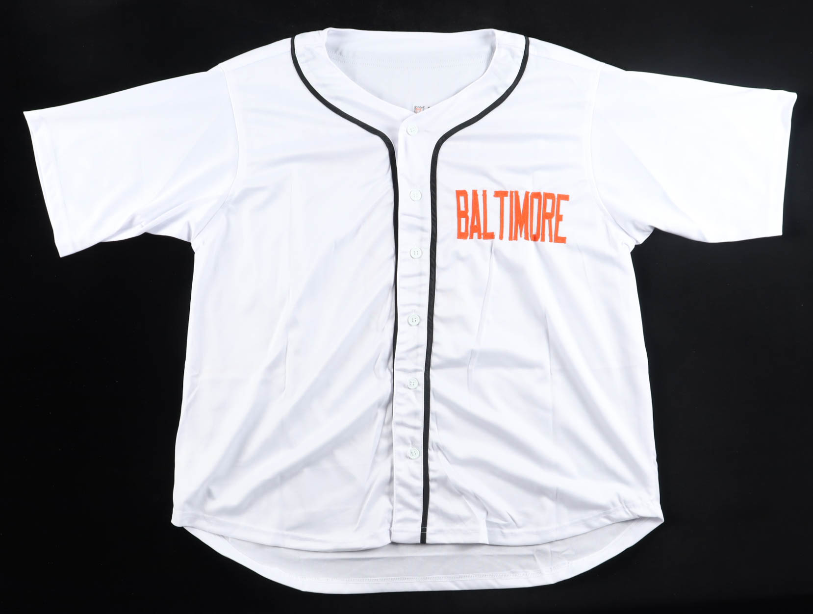 Custom jersey with everything sewn on, size XL. Hand-signed and inscribed by Ron Hansen.